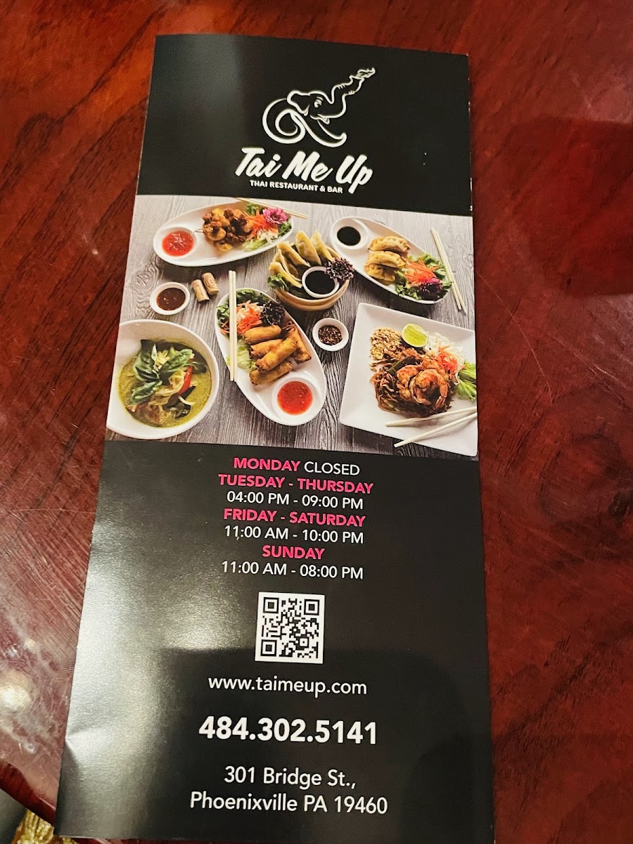 Welcome to Tai Me Up, a vibrant culinary haven located in the heart of Phoenixville, PA. This delightful spot offers a menu brimming with authentic Thai flavors and creative twists. As you peruse their offerings, you’ll find enticing starters like Duck Tacos—roasted duck artfully combined with fresh scallions and cucumbers for a flavor explosion. The Spring Rolls invite you into a world of crispy, golden-brown perfection, served with a zesty pineapple chili sauce that dances on the palate.